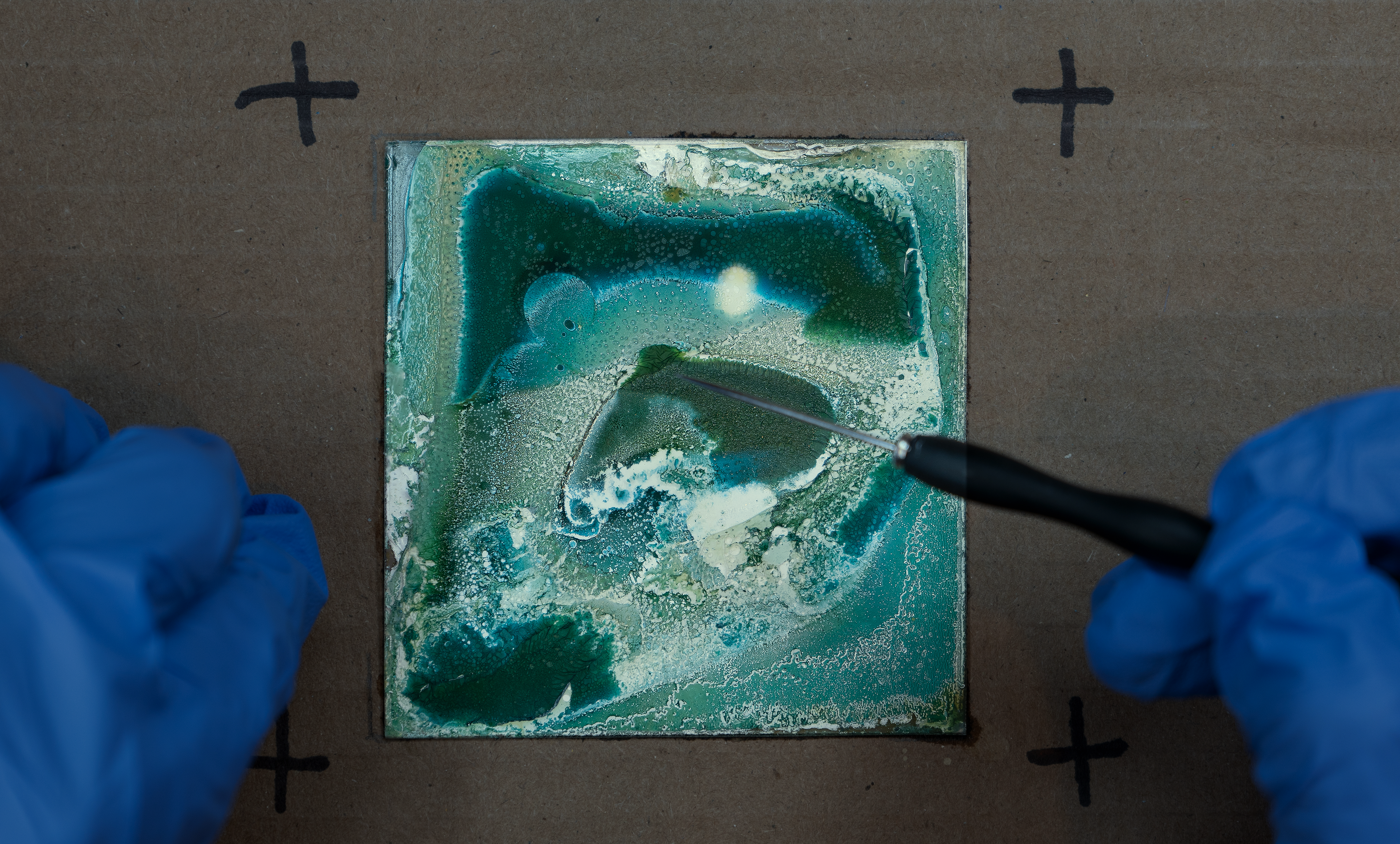Each version broke differently — no two reactions were the same. I leaned into this process and developed a different treatment for each of the 8 episodes. I liked how that mirrored the narrative: the same treatment applied again and again, with wildly different outcomes.